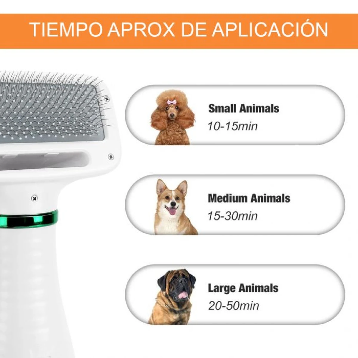Nota: esta secadora tiene un ajuste de temperatura más bajo que un secador de pelo humano para proteger a tu mascota del sobrecalentamiento.