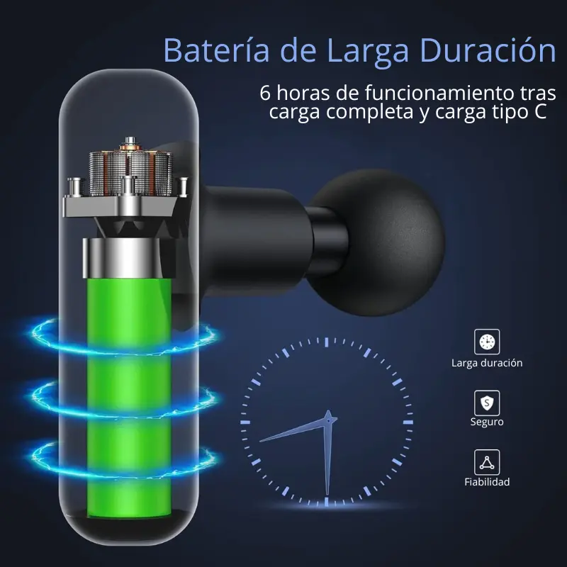 Esta pistola de masaje ofrece 5 velocidades para grupos musculares difíciles de alcanzar, cambiada con un solo botón.
